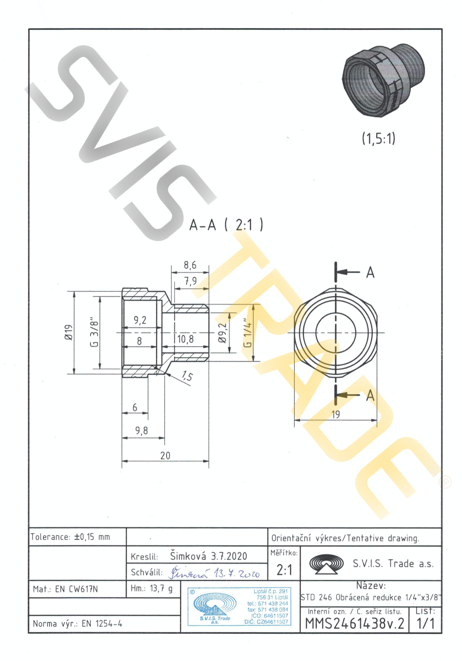 | Norme: | ČSN EN 1254-4, ČSN EN ISO 228-1 |