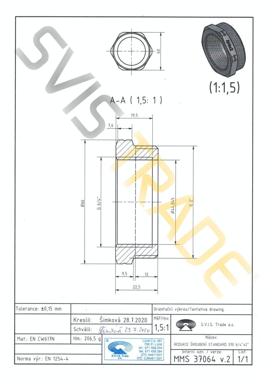 Norme: ČSN EN 1254-4, ČSN EN ISO 228-1