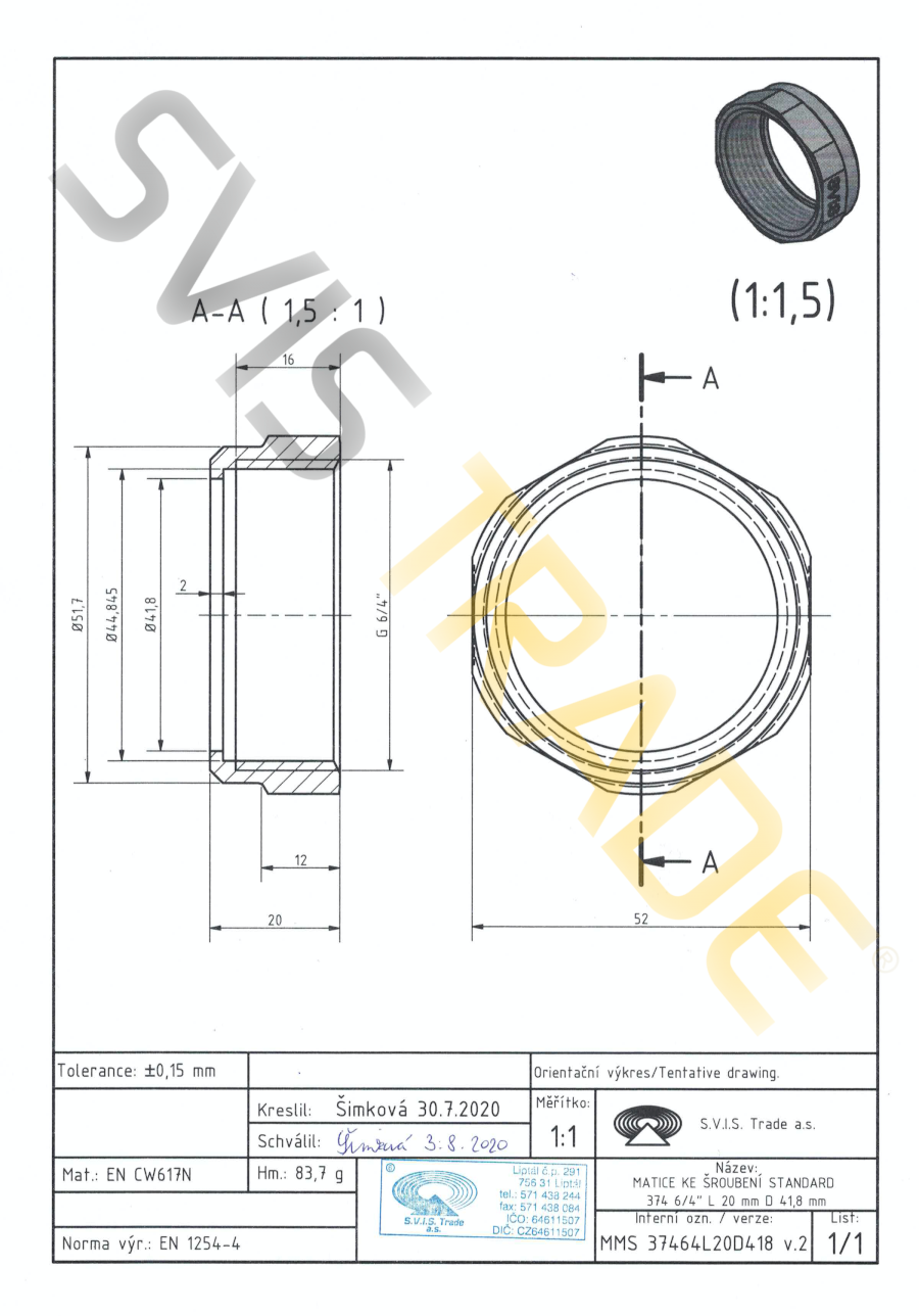 | Norme: | ČSN EN 1254-4, ČSN EN ISO 228-1 |