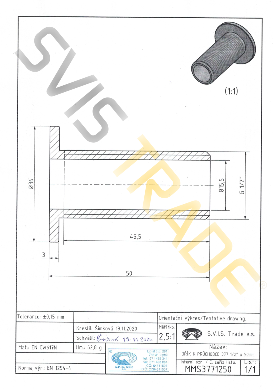 S.V.I.S. Trade a.s. - český výrobce fitinek je držitelem certifikátů ISO 9001, ISO 14001, OHSAS 18001. Na mosazné fitinky se vztahuje pojištění za škody pro území celé EU.