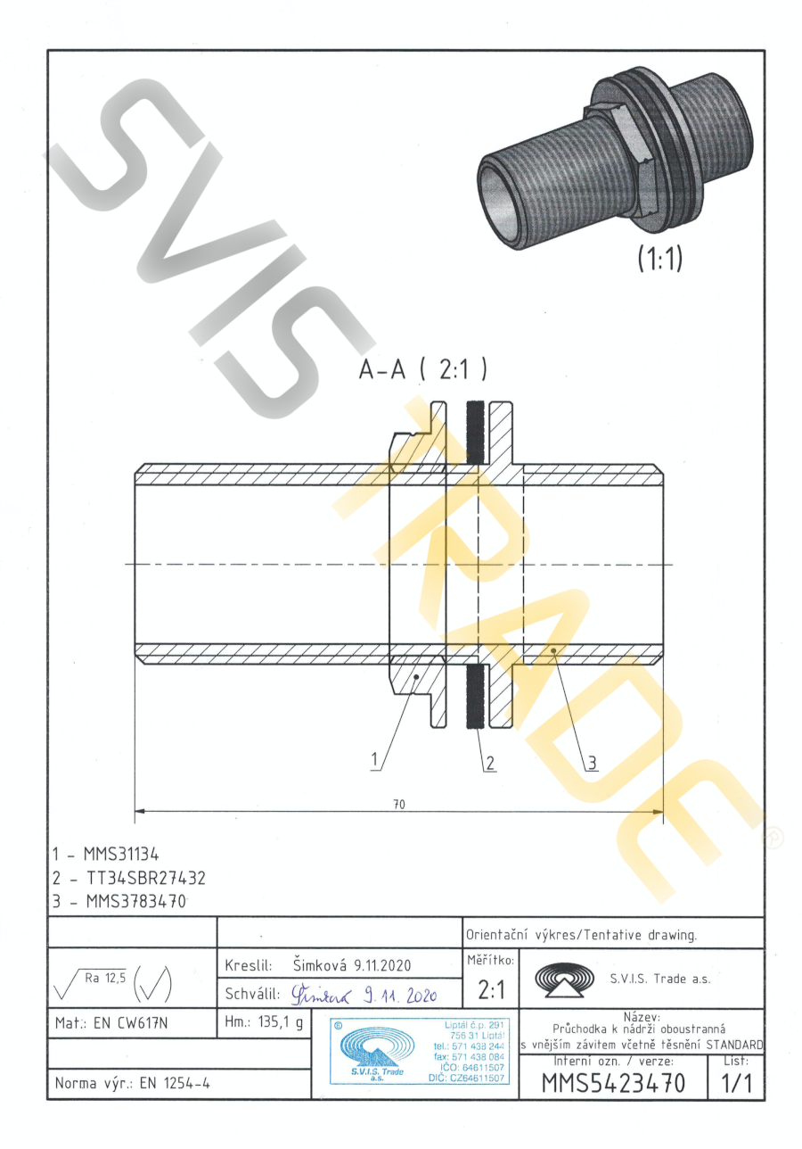 S.V.I.S. Trade a.s. - český výrobce fitinek je držitelem certifikátů ISO 9001, ISO 14001, OHSAS 18001. Na mosazné fitinky se vztahuje pojištění za škody pro území celé EU.