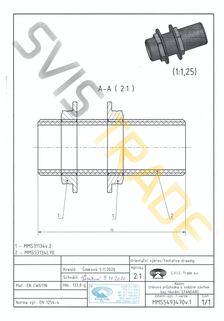 S.V.I.S. Trade a.s. - český výrobce fitinek je držitelem certifikátů ISO 9001, ISO 14001, OHSAS 18001. Na mosazné fitinky se vztahuje pojištění za škody pro území celé EU.