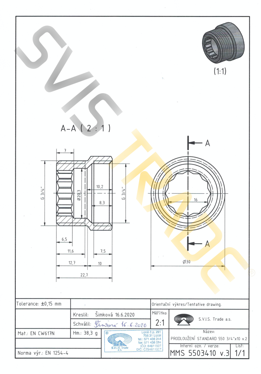 | Norme: | ČSN EN 1254-4, ČSN EN ISO 228-1 |