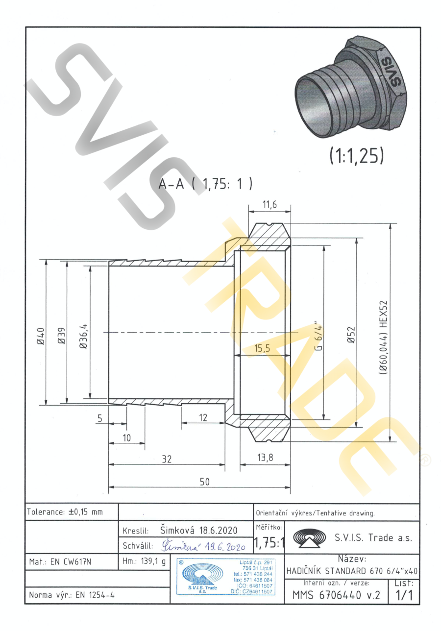 | Norme: | ČSN EN 1254-4, ČSN EN ISO 228-1 |
