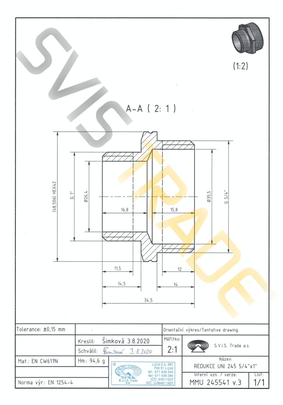 | Norme: | ČSN EN 1254-4, ČSN EN ISO 228-1 |