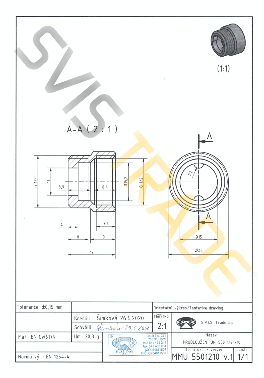 | Norme: | ČSN EN 1254-4, ČSN EN ISO 228-1 |
