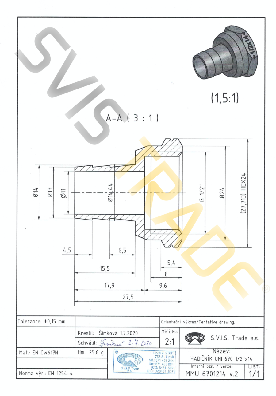| Norme: | ČSN EN 1254-4, ČSN EN ISO 228-1 |