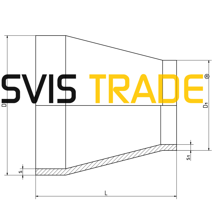 Szénacélból készült idom csővezetékek összekötésére használható tompa hegesztéssel. Fajta – koncentrikus szűkítő (közöstengelyű), 1 forma. Fekete kivitelben kapható vékony réteg olaj bázisú tartósítószerrel kezelve. EN 10253-1 szabvány szerint gyártva.