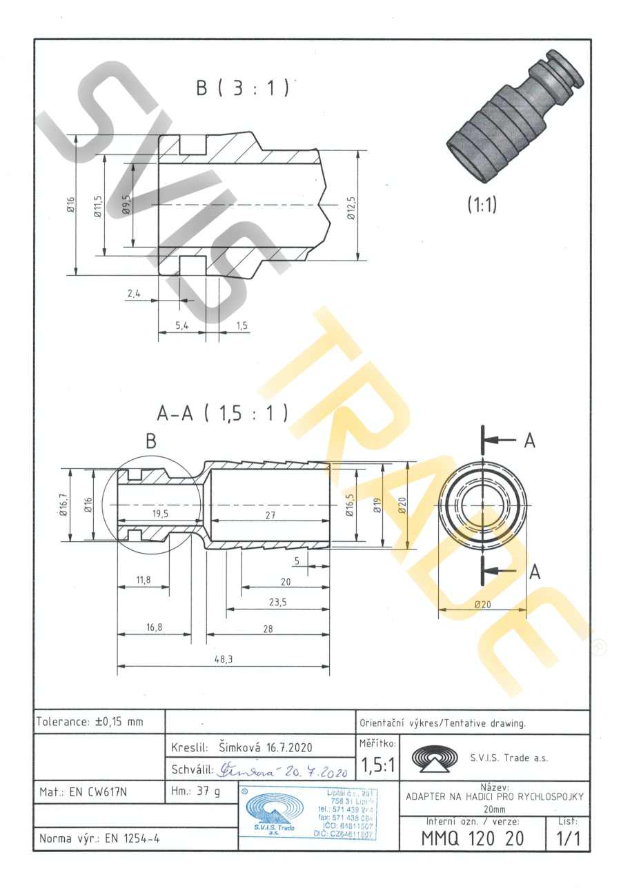 A sárgaréz idomok a CW617N minőségi réz anyagból vannak előállitva.