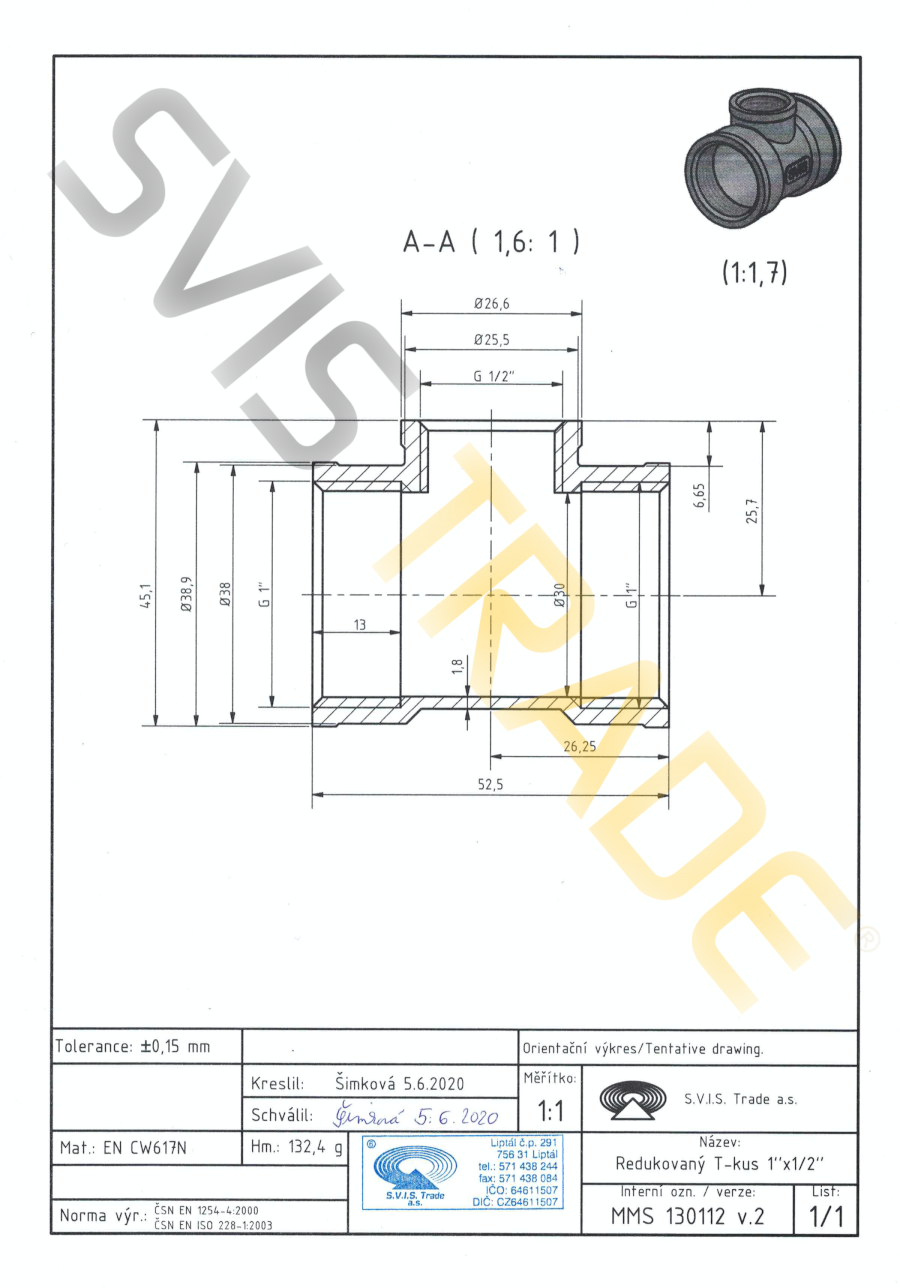 A sárgaréz idomok a CW617N minőségi réz anyagból vannak előállitva.