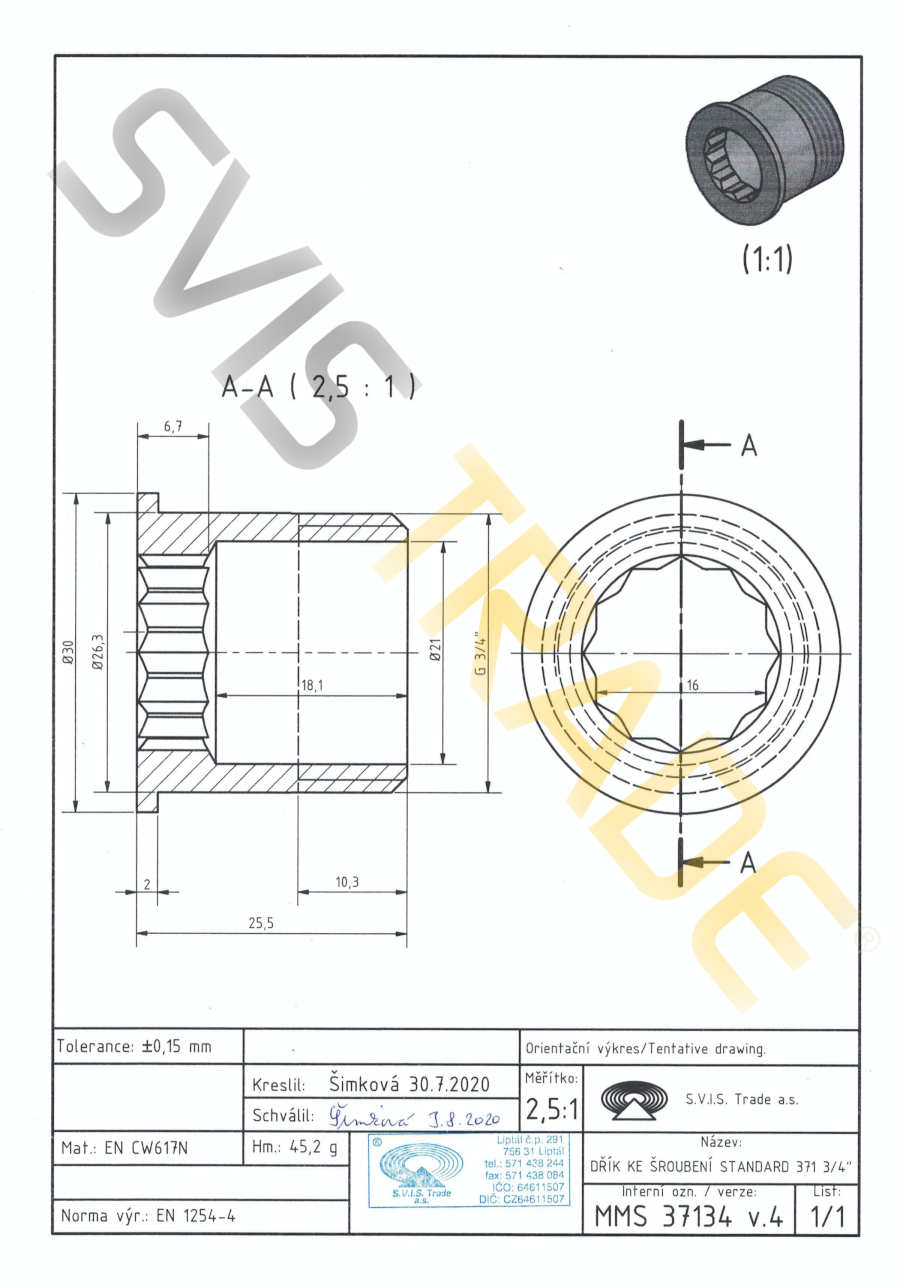 | Normák: | ČSN EN 1254-4, ČSN EN ISO 228-1 |