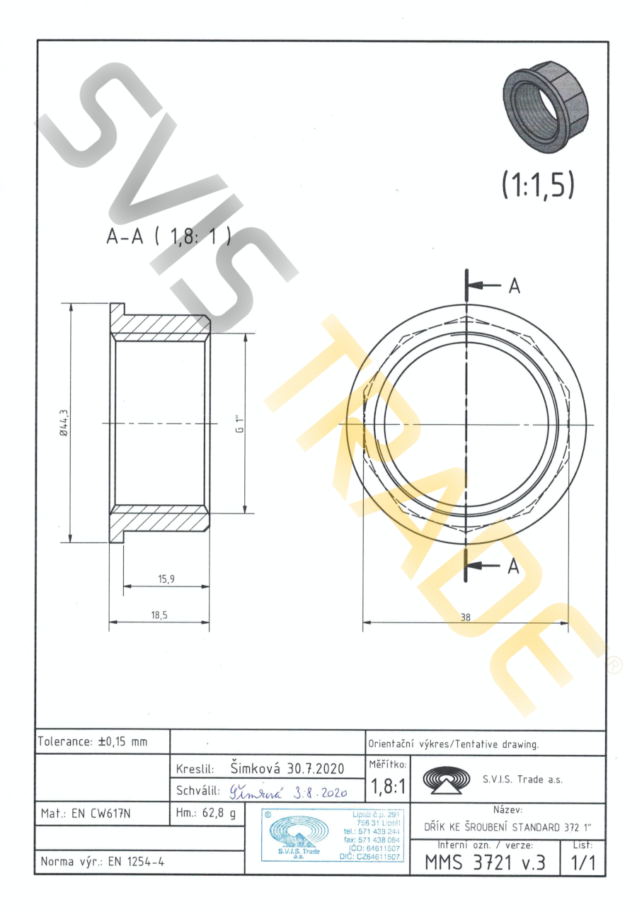 Sárgaréz idom CW617N. ISO 228-1 as norma szerint meghatározott menetes kapcsolásokra alkalmas. Felületi kezelés nélkül.