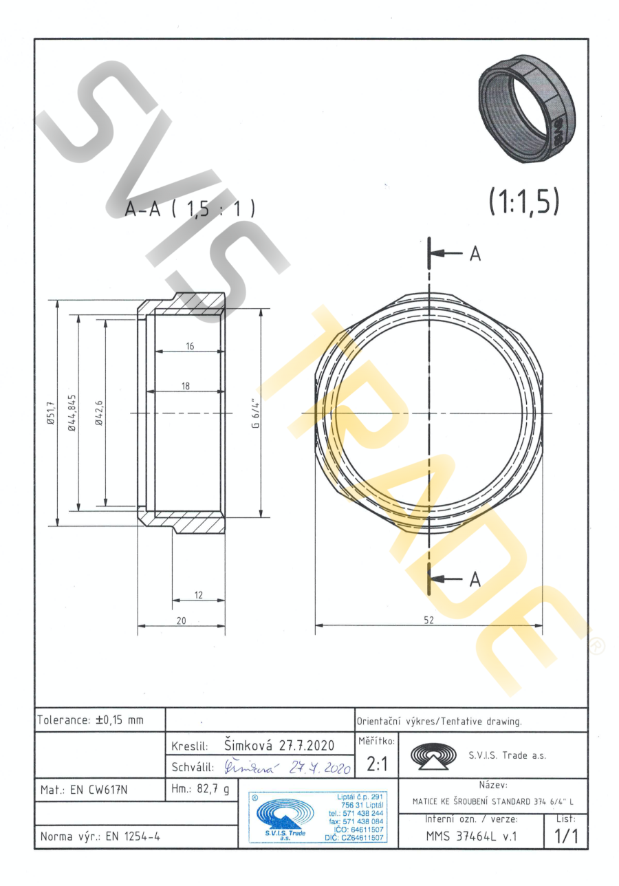 Sárgaréz idom CW617N. ISO 228-1 as norma szerint meghatározott menetes kapcsolásokra alkalmas. Felületi kezelés nélkül.