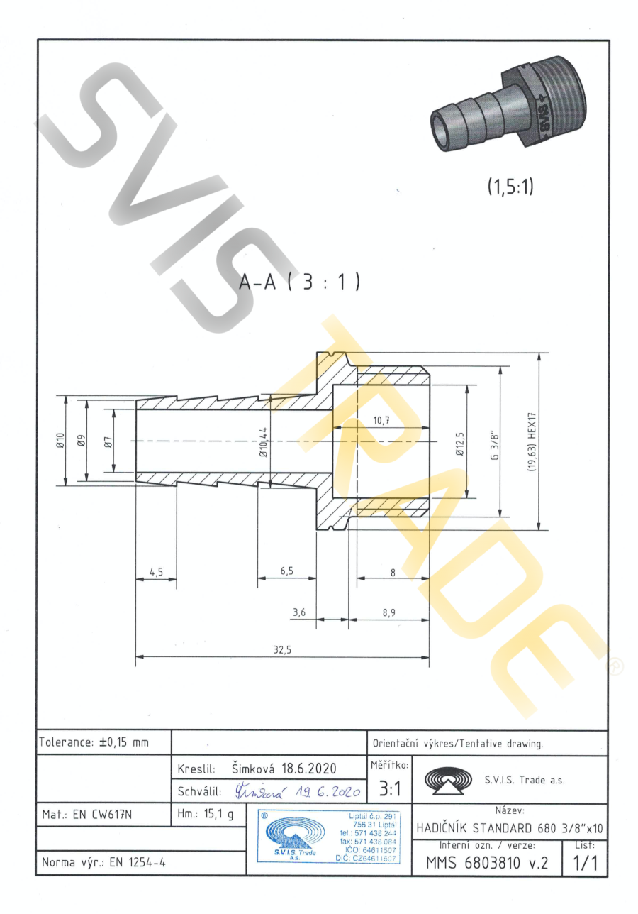 Sárgaréz idom CW617N. ISO 228-1 as norma szerint meghatározott menetes kapcsolásokra alkalmas. Felületi kezelés nélkül.