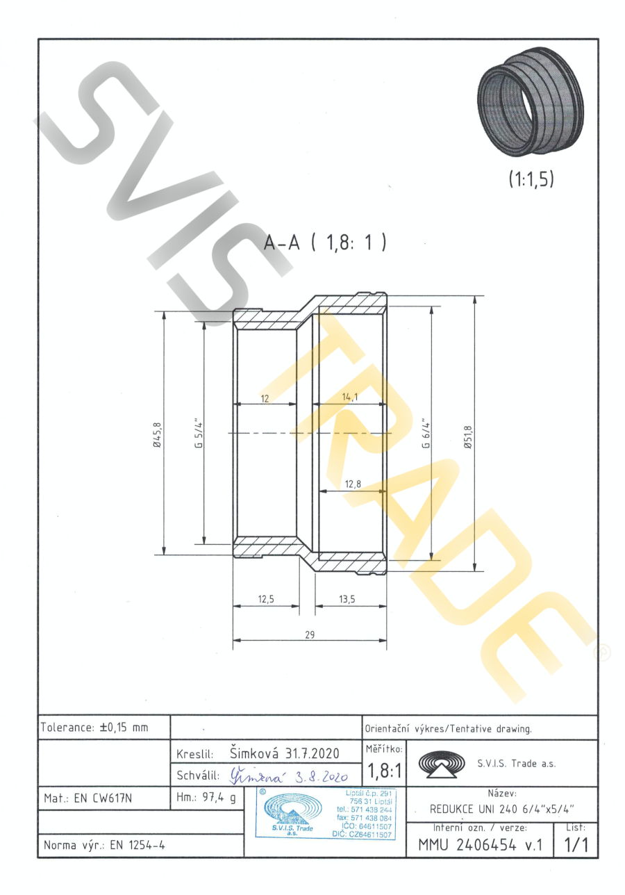 | Normák: | ČSN EN 1254-4, ČSN EN ISO 228-1 |