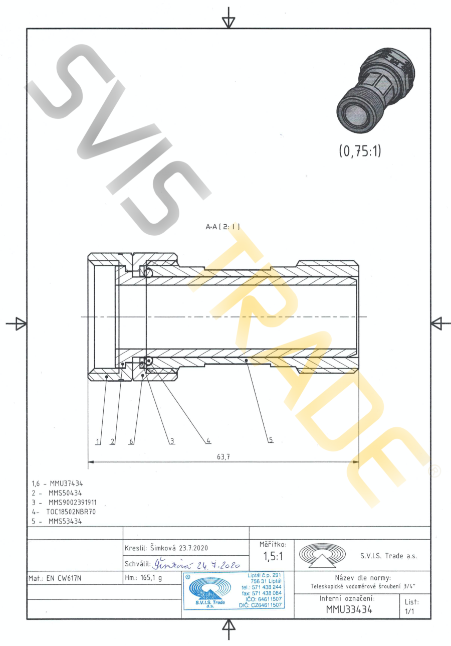 Menetes sárgarézidom együttes hat darabból, egyenes hollander kiengedhető betéttel. A betét kiengedése után az anya és az O alakú körgyűrű ész az alátét segítségével rögzítjük a kívánt állapotot. Lapos tömítőfelület belső-külső csőmenettel, felületi kezelés nélkül. Hengeres G menettel nem tőmítő mentetekhez az ISO 228-1 norma szerint. Gyártása az EN 1254-4 norma szerint történik.