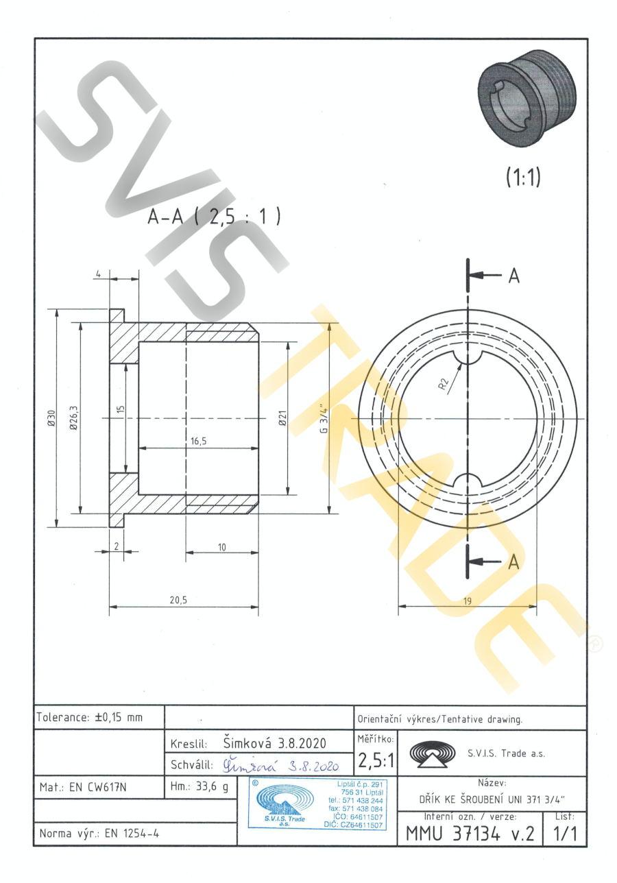 Sárgaréz idom CW617N. ISO 228-1 as norma szerint meghatározott menetes kapcsolásokra alkalmas. Felületi kezelés nélkül.