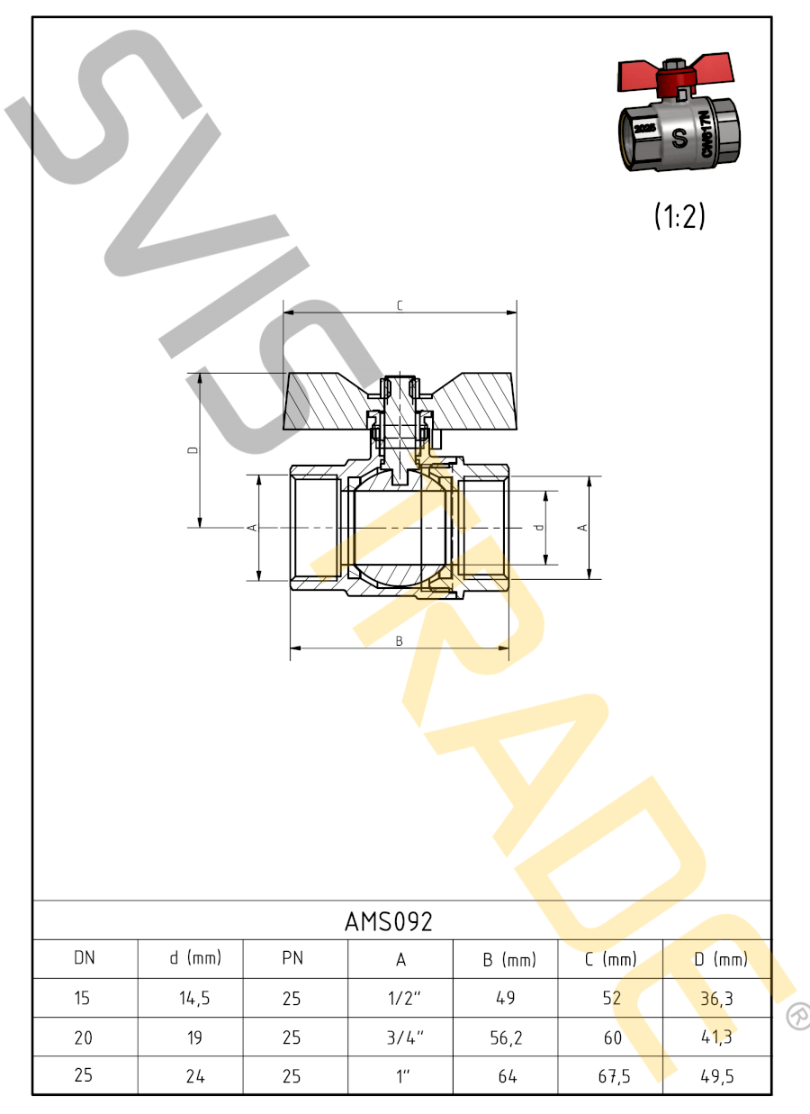 092 3/4"-os BB golyóscsap, pillangó kar STANDARD
