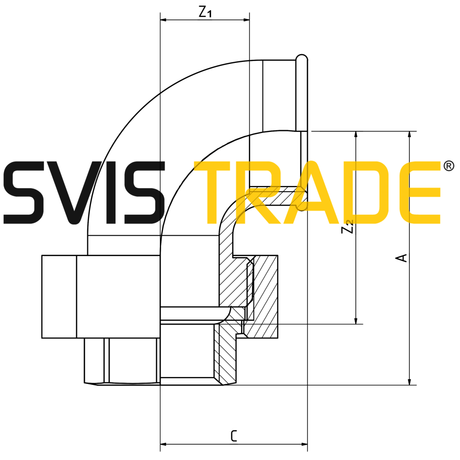 Kształtka z żeliwa temperowanego B-300-06. Przeznaczona do połączeń z gwintem według normy ISO 7-1. Wykonanie ocynk.Powłoka cynkowa o grubości 70 μm wytwarzana jest cynkowaniem ogniowym.