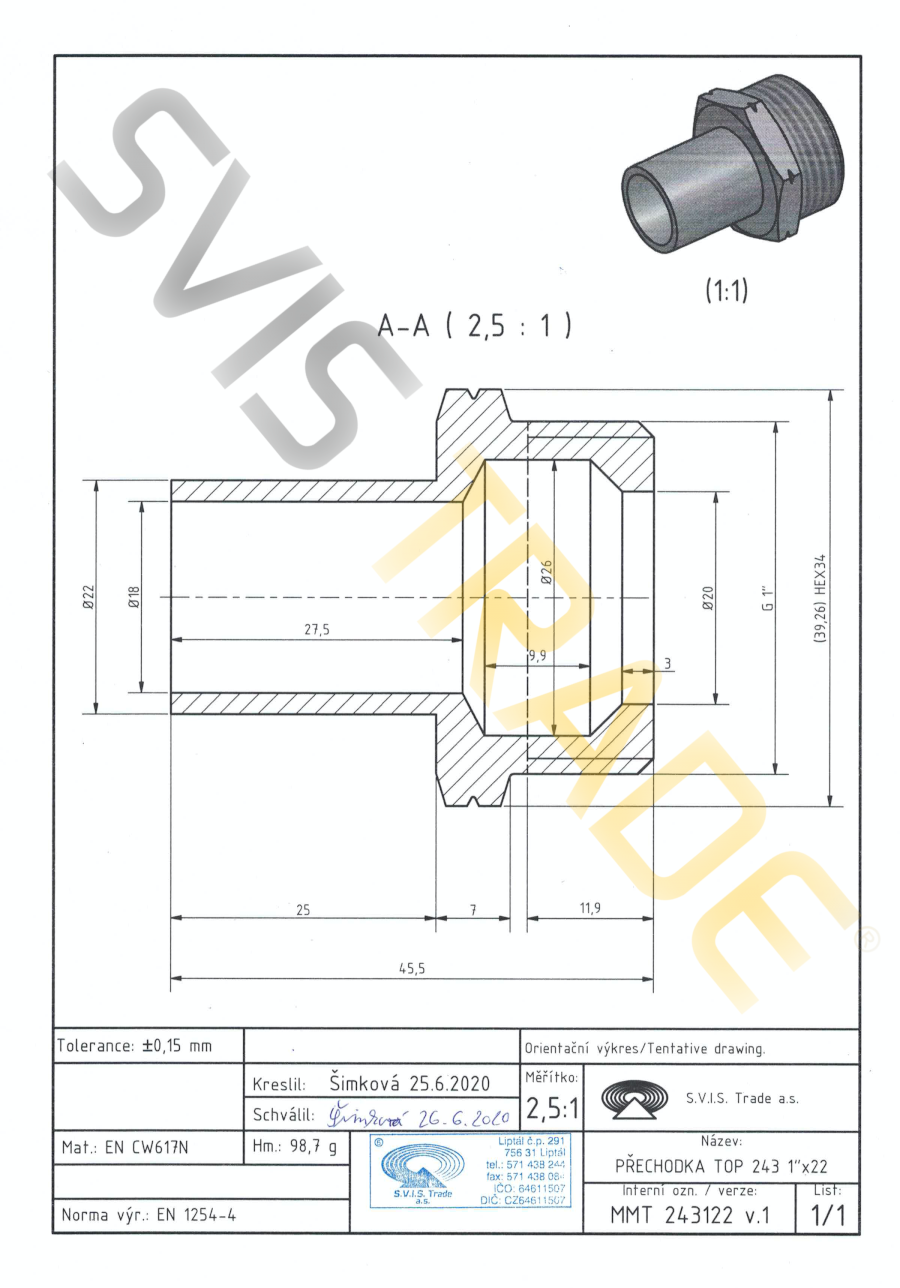 S.V.I.S. Trade a.s. - český výrobce fitinek je držitelem certifikátů ISO 9001, ISO 14001, OHSAS 18001. Na mosazné fitinky se vztahuje pojištění za škody pro území celé EU.