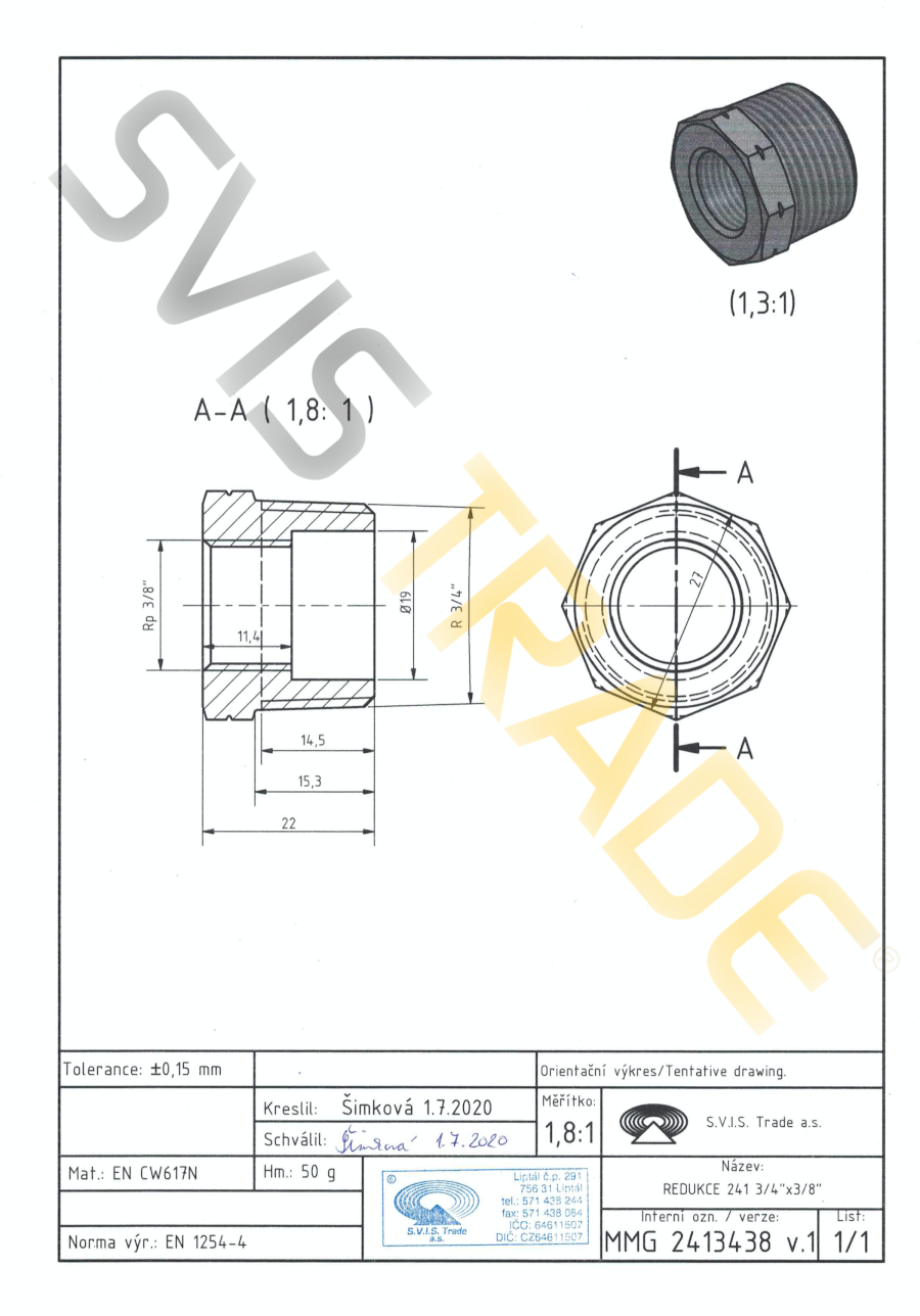 | Norme: | ČSN ISO 7-1, ČSN EN 1254-4 |