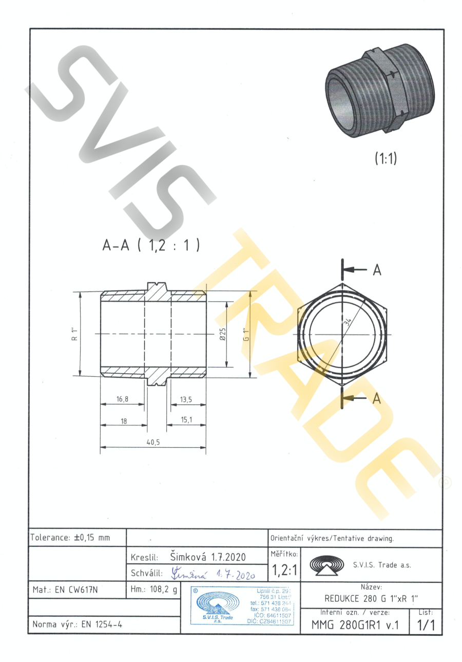 | Norme: | ČSN ISO 7-1, ČSN EN 1254-4, ČSN EN ISO 228-1 |