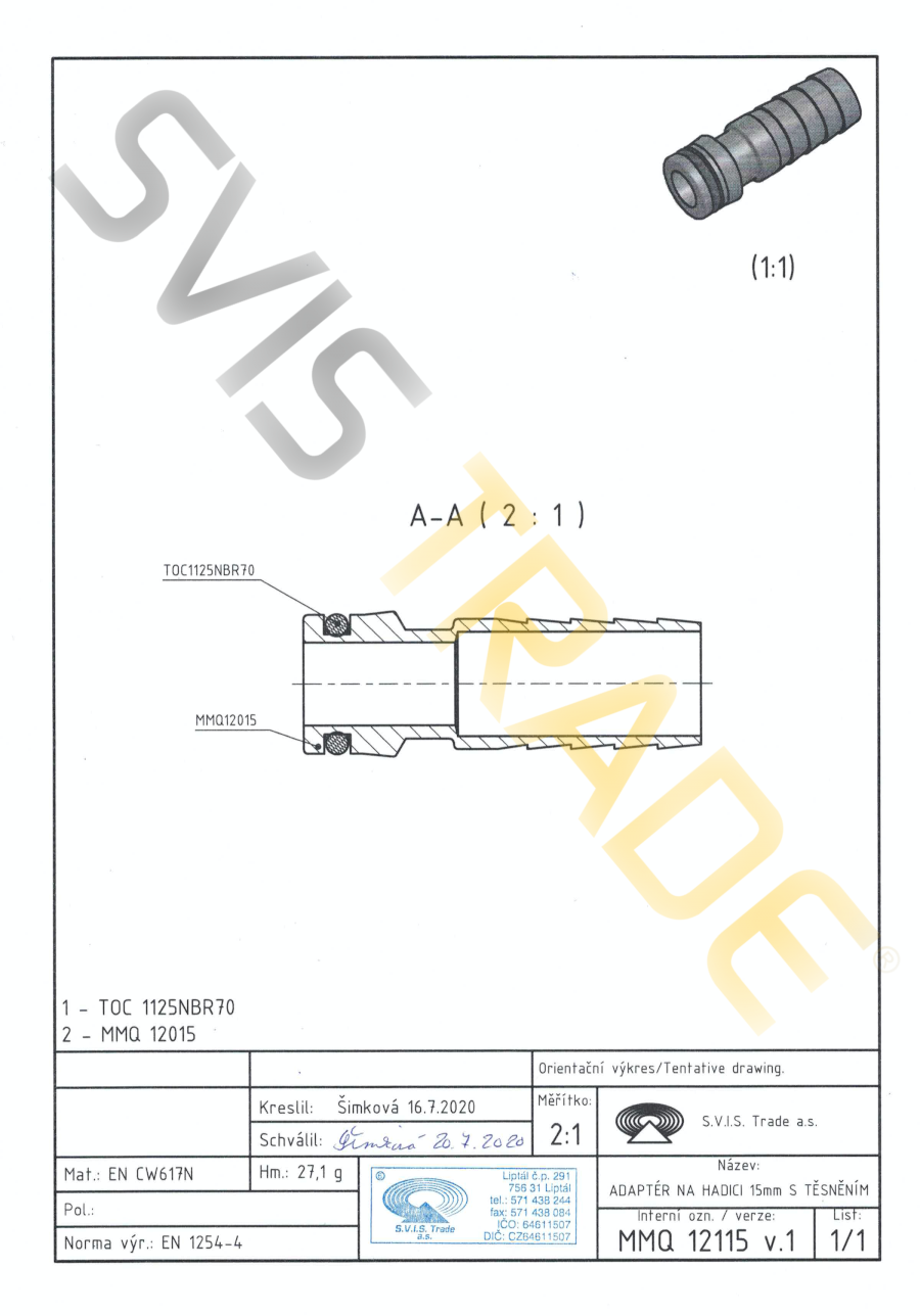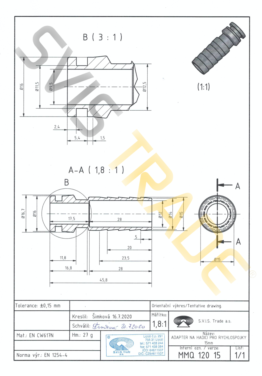 | Norme: | ČSN EN 1254-4, ČSN EN ISO 228-1 |