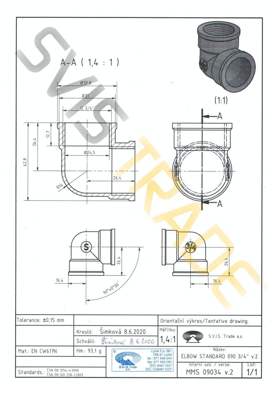 | Norme: | ČSN EN 1254-4, ČSN EN ISO 228-1 |