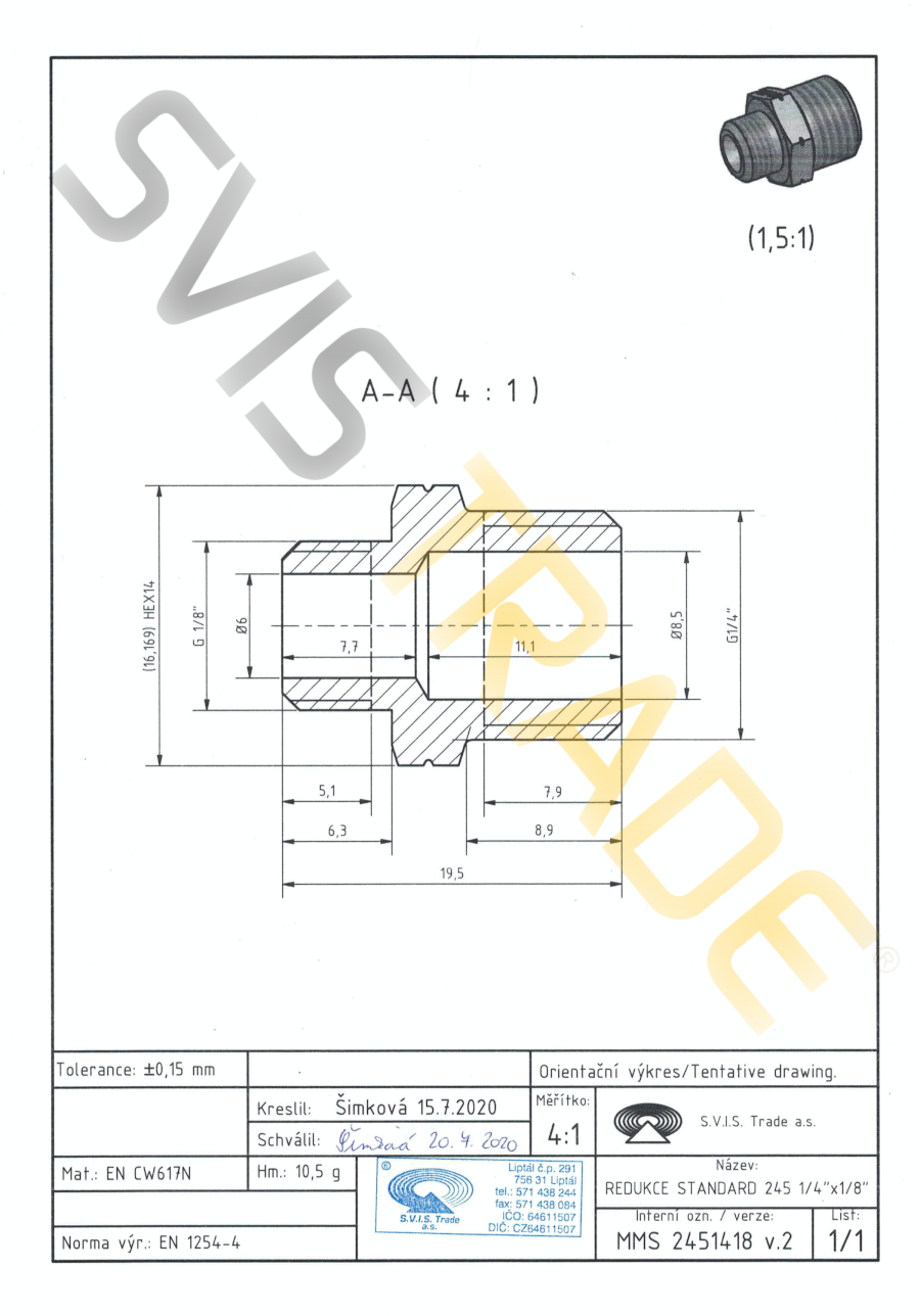 | Norme: | ČSN EN 1254-4, ČSN EN ISO 228-1 |