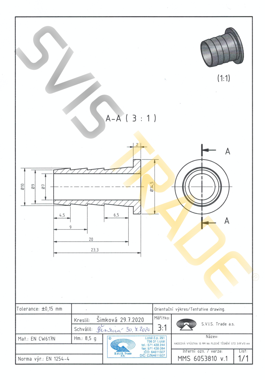 S.V.I.S. Comerț a.s. - producător ceh de accesorii este certificat ISO 9001, ISO 14001, OHSAS 18001. de fitinguri din alama sunt acoperite de asigurare pentru daune pe teritoriul UE.