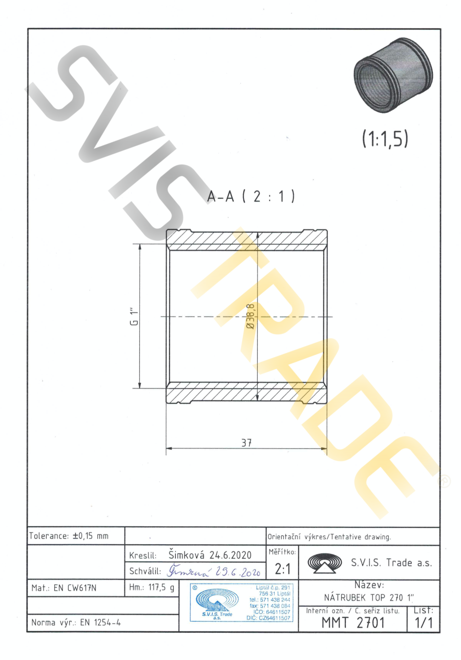 | Norme: | ČSN EN 1254-4, ČSN EN ISO 228-1 |