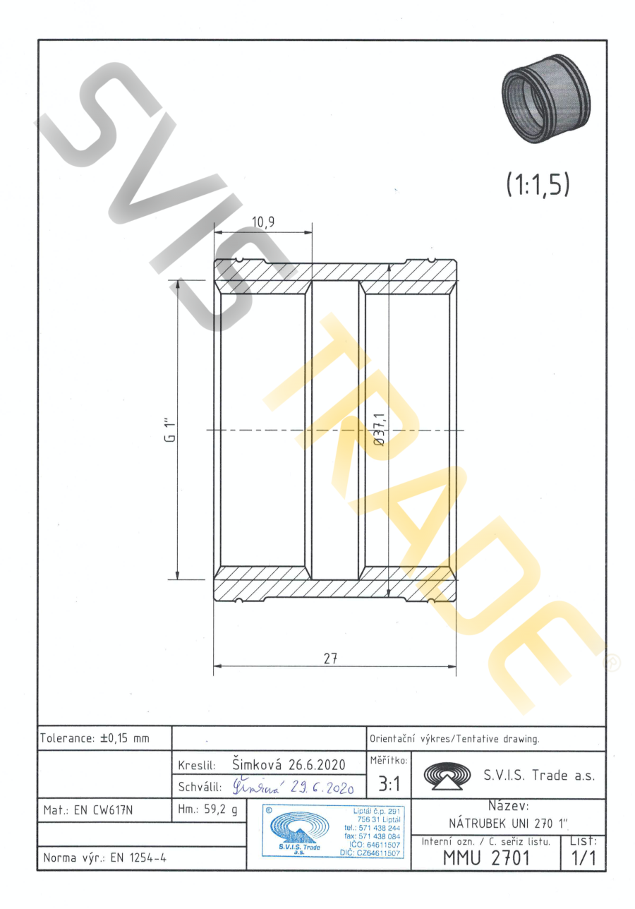| Norme: | ČSN EN 1254-4, ČSN EN ISO 228-1 |
