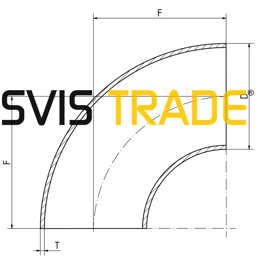 Teava fitingului din otel carbonic destinat pentru unirea prin imbinare sudabila. Tip – curba 90°, simbol 3D: raza curbarii R≈1,5D. Livrat in stare negru cu strat subtire de ulei care conserva. Produs in conformitate cu norma EN 10253-1.