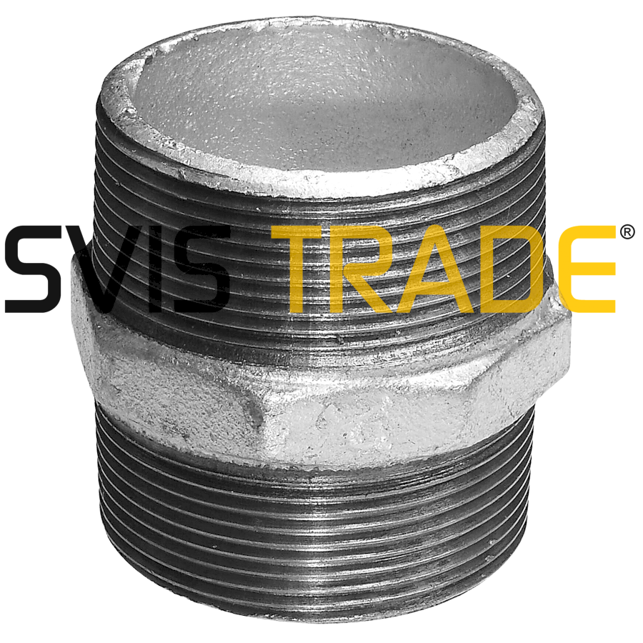 Teava filetata din fonta maleabila – niplu hexagonal cu filet exterior si design zincat. Filetele exterioare R sunt conice pentru etansarea partilor prin filet conform normei ISO 7-1. Produse conform normei EN 10242, mark N8.