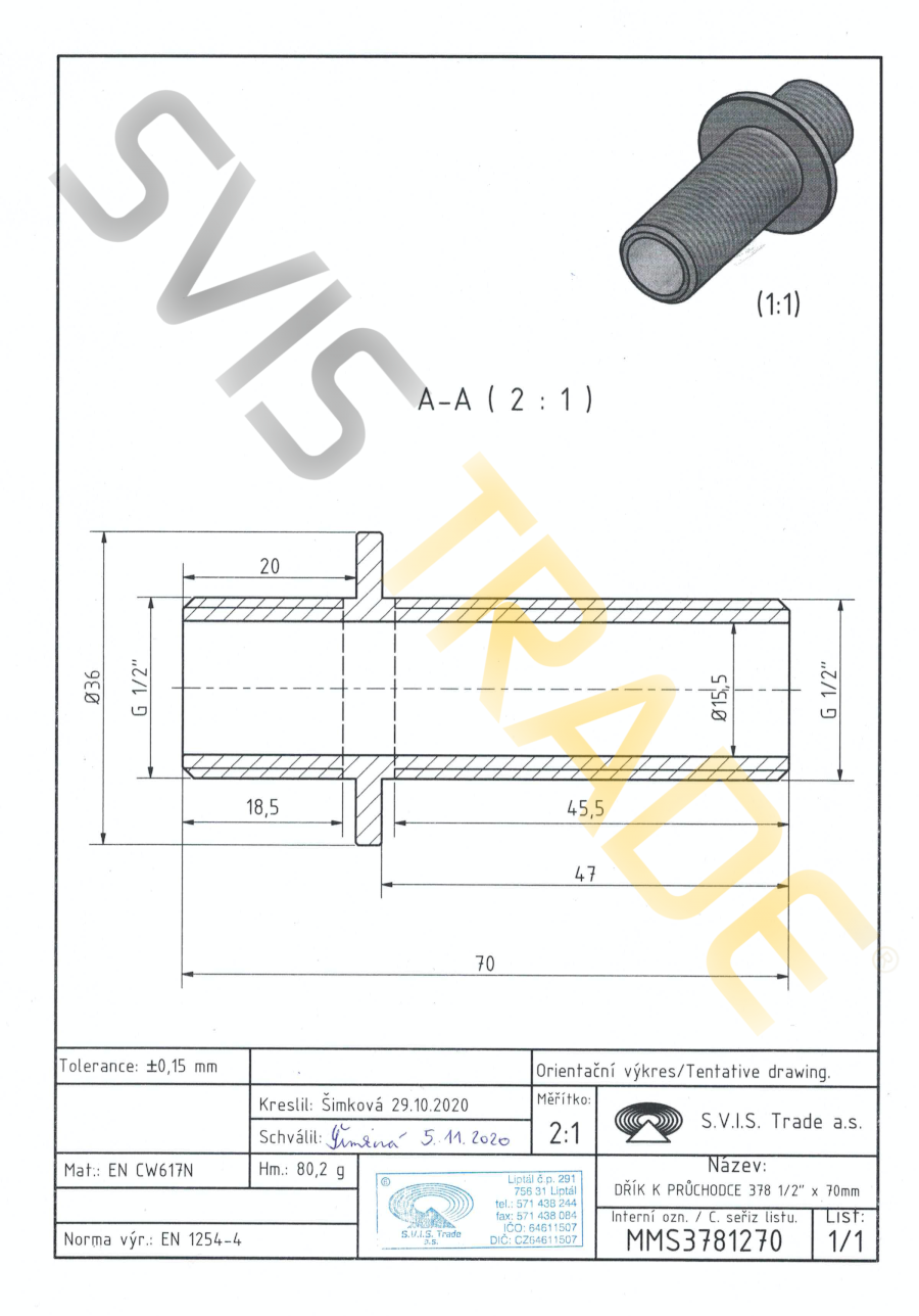 S.V.I.S. Trade a.s. - český výrobce fitinek je držitelem certifikátů ISO 9001, ISO 14001, OHSAS 18001. Na mosazné fitinky se vztahuje pojištění za škody pro území celé EU.