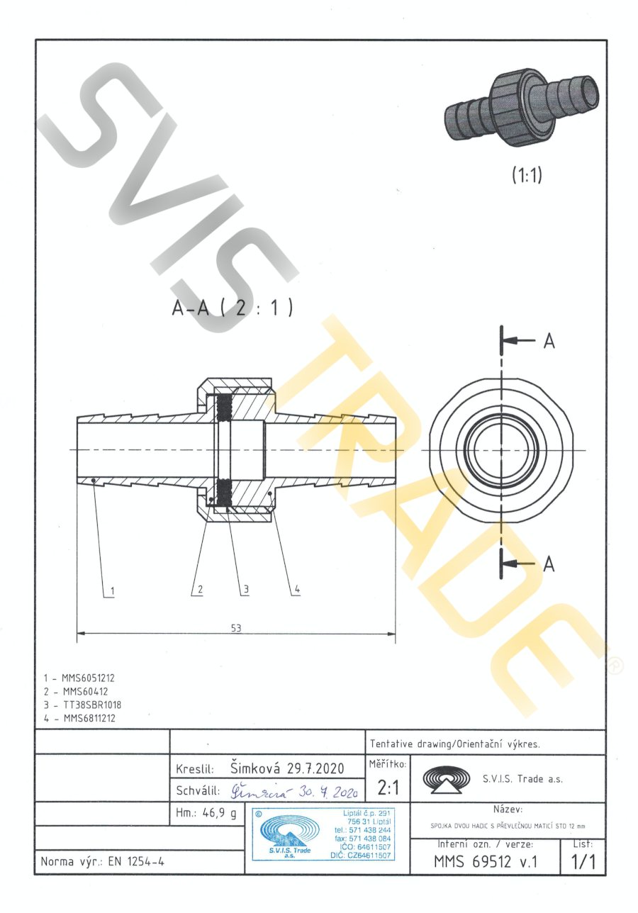 Tvarovka z mosadze CW617N. Určená pre spájanie so závitom ISO 228-1. Prevedenie: bez povrchovej úpravy.