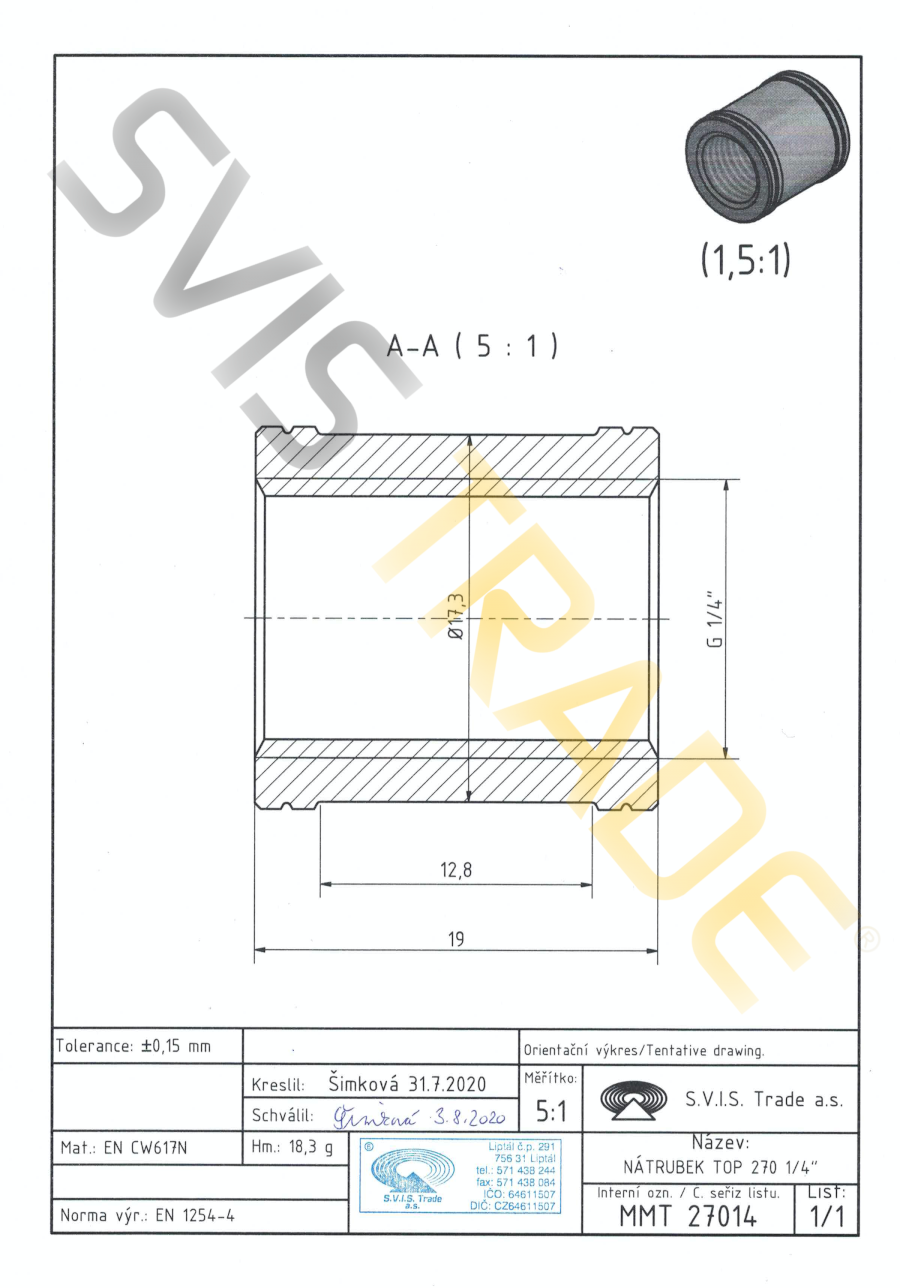 | Normy: | ČSN EN 1254-4, ČSN EN ISO 228-1 |