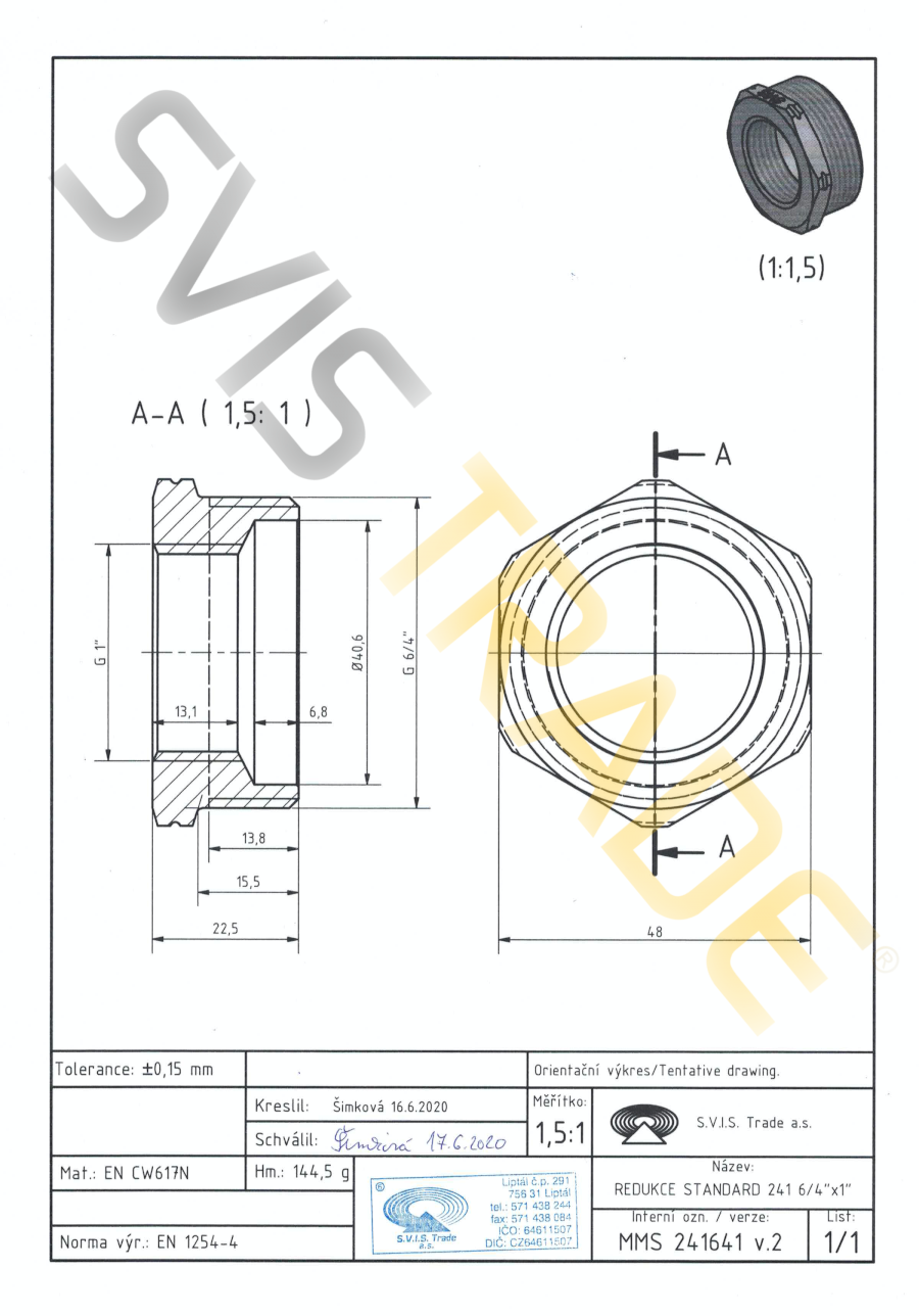 | Normy: | ČSN EN 1254-4, ČSN EN ISO 228-1 |