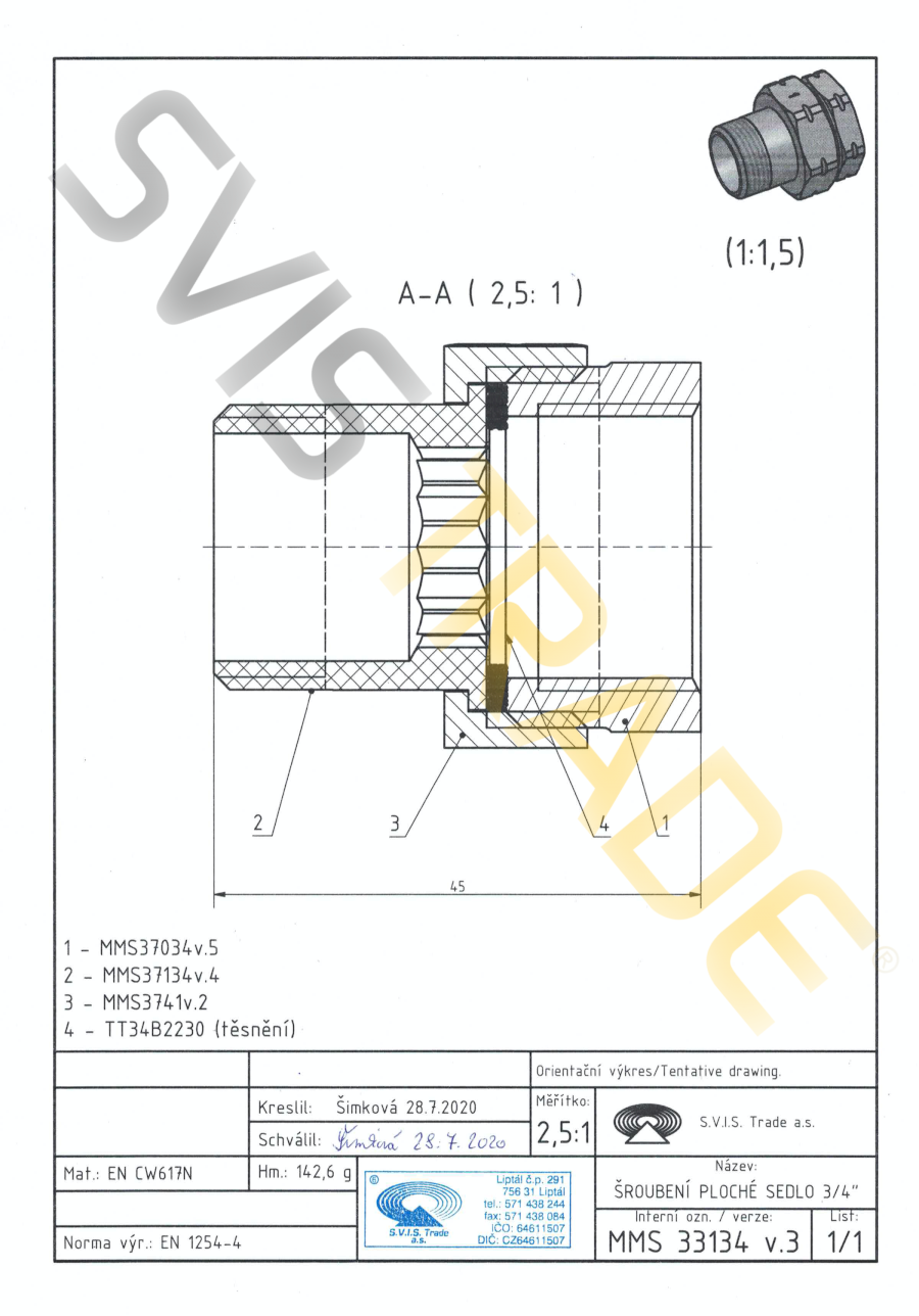 | Normy: | ČSN EN 1254-4, ČSN EN ISO 228-1 |
