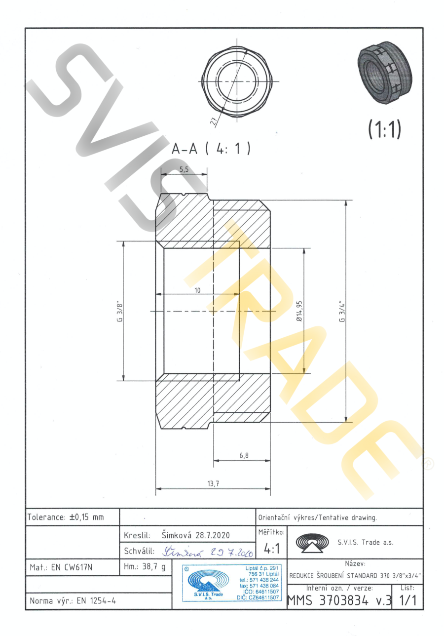 | Norms: | ČSN EN 1254-4, ČSN EN ISO 228-1 |
