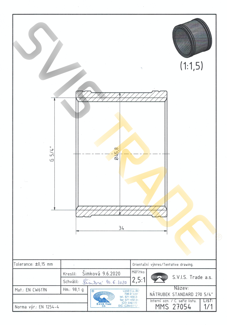 | Norme: | ČSN EN 1254-4, ČSN EN ISO 228-1 |