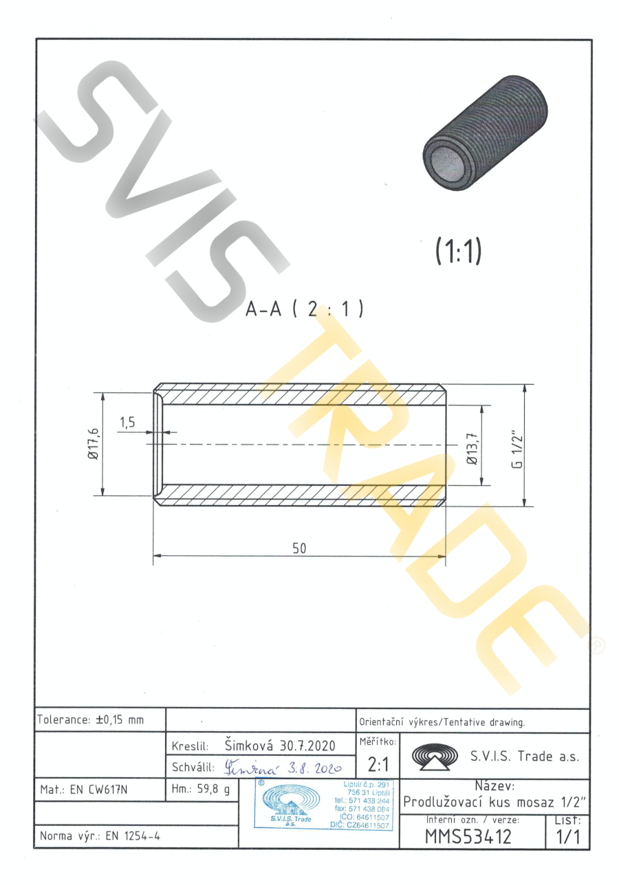 | Norme: | ČSN EN 1254-4, ČSN EN ISO 228-1 |