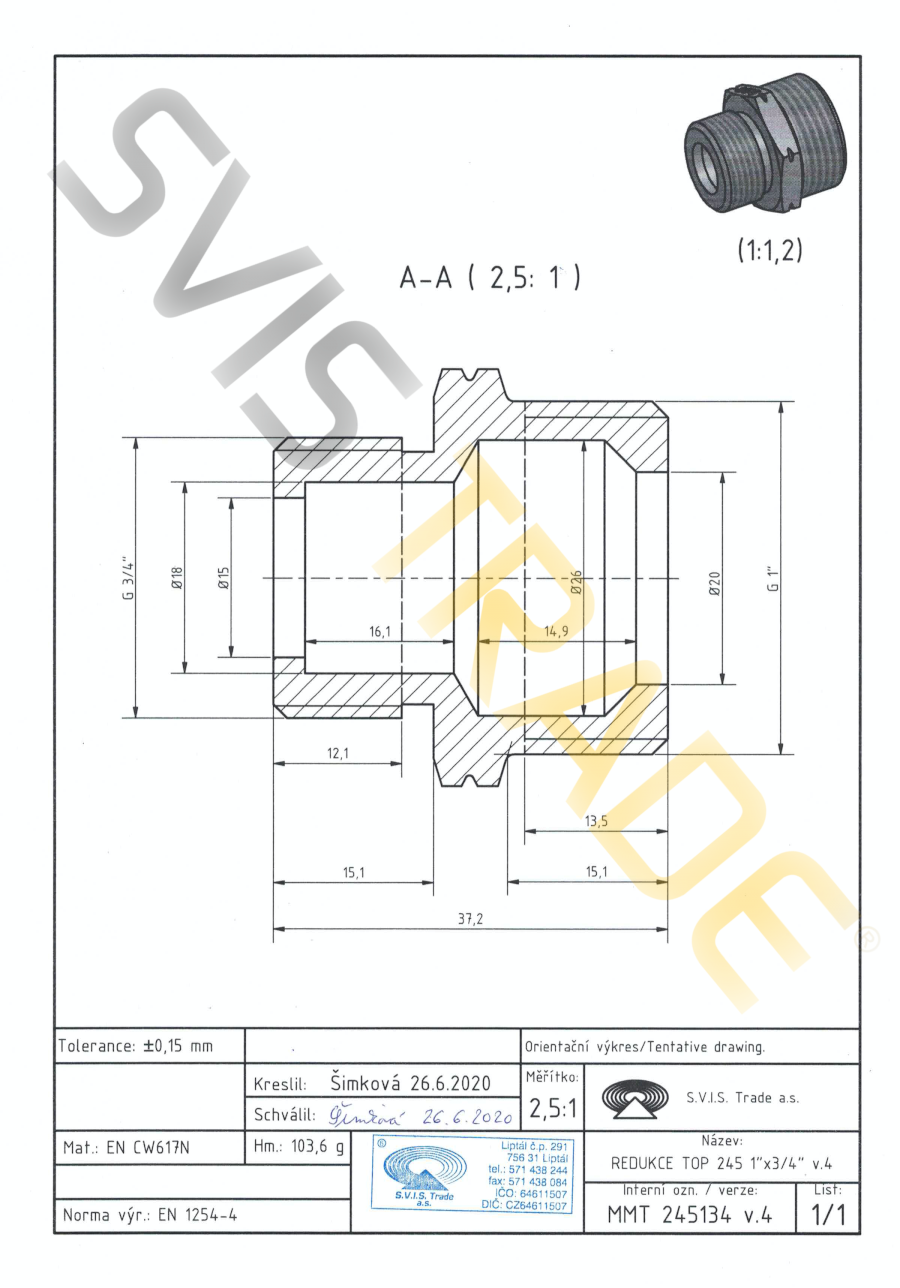 | Norme: | ČSN EN 1254-4, ČSN EN ISO 228-1 |