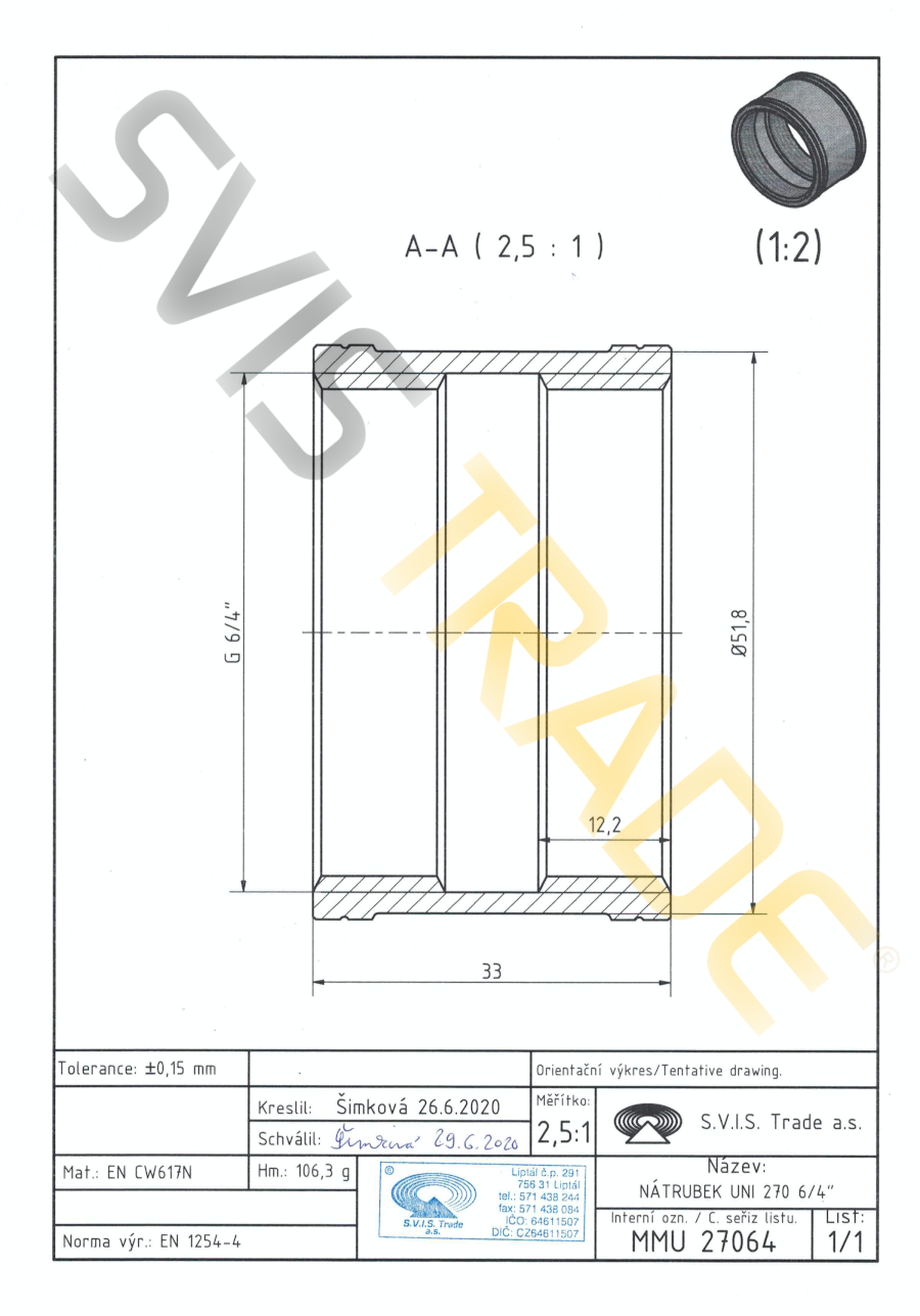 | Norme: | ČSN EN 1254-4, ČSN EN ISO 228-1 |