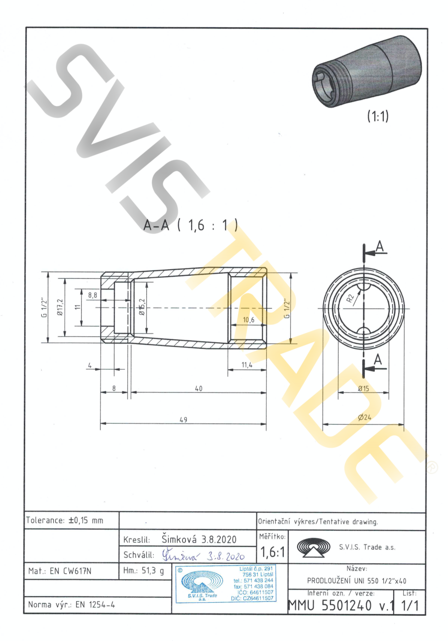 | Norme: | ČSN EN 1254-4, ČSN EN ISO 228-1 |