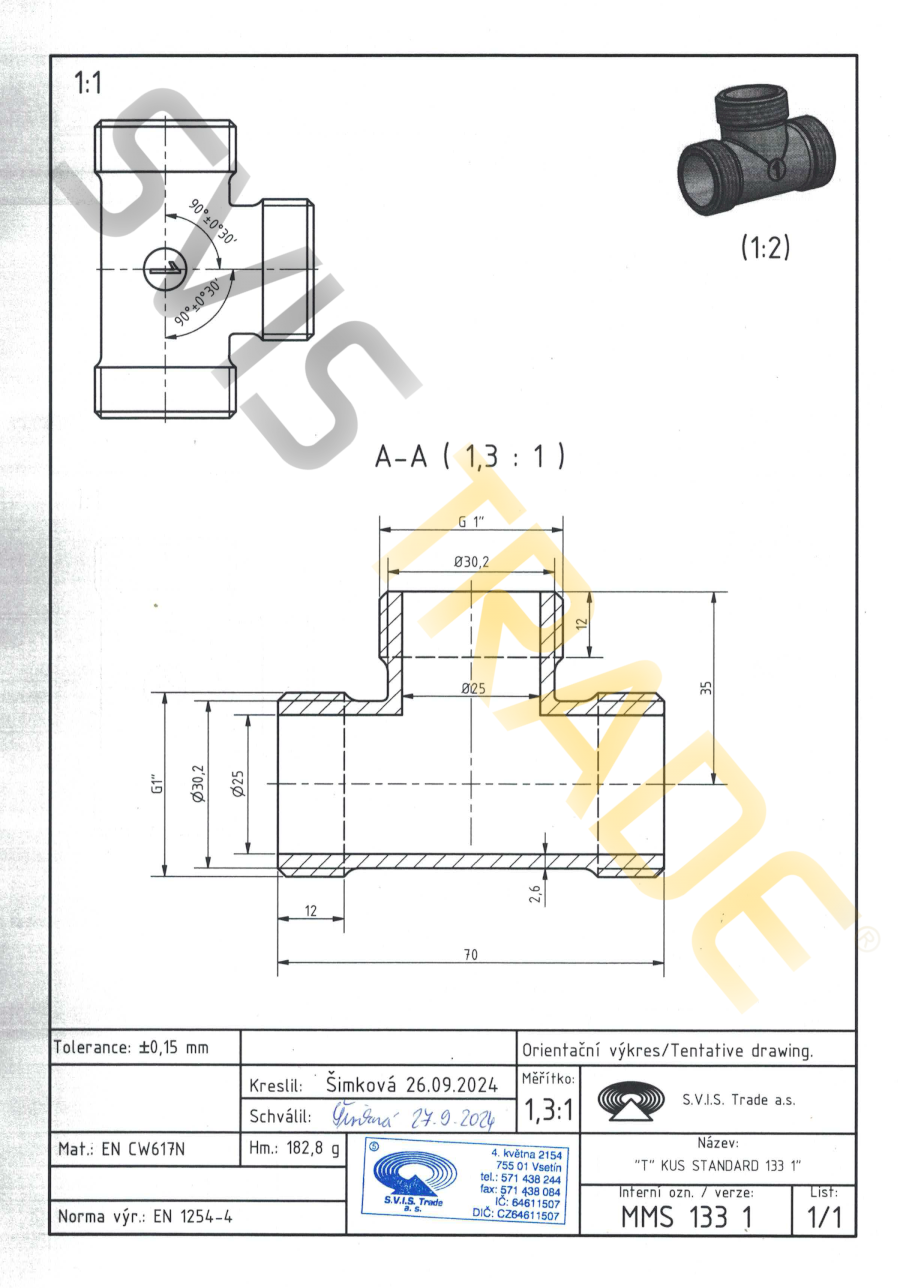 S.V.I.S. Trade Kft - cseh szerelvénygyártó ISO 9001, ISO 14001, OHSAS 18001 tanúsítvánnyal rendelkezik. A sárgaréz szerelvényekre az egész EU-ra kiterjedő kárbiztosítással rendelkezik.Használható : Víz, ivóvíz, levegő, nem abrazív és nem agresszív folyadékok 1,6 MPa megengedett nyomásig és -20°C és 120°C közötti hőmérsékletig, a médium nem fagyhat meg A STANDARD rézidomok - megfelelnek a menetes csatlakozás magasabb követelményeinek.