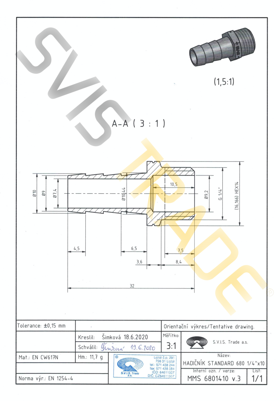 Sárgaréz idom CW617N. ISO 228-1 as norma szerint meghatározott menetes kapcsolásokra alkalmas. Felületi kezelés nélkül.
