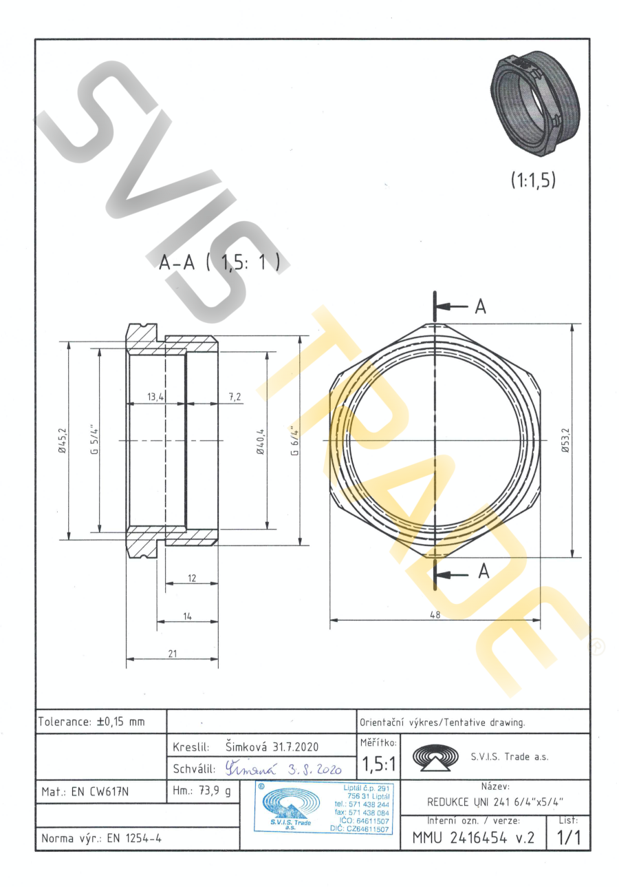 Sárgaréz idom CW617N. ISO 228-1 as norma szerint meghatározott menetes kapcsolásokra alkalmas. Felületi kezelés nélkül.