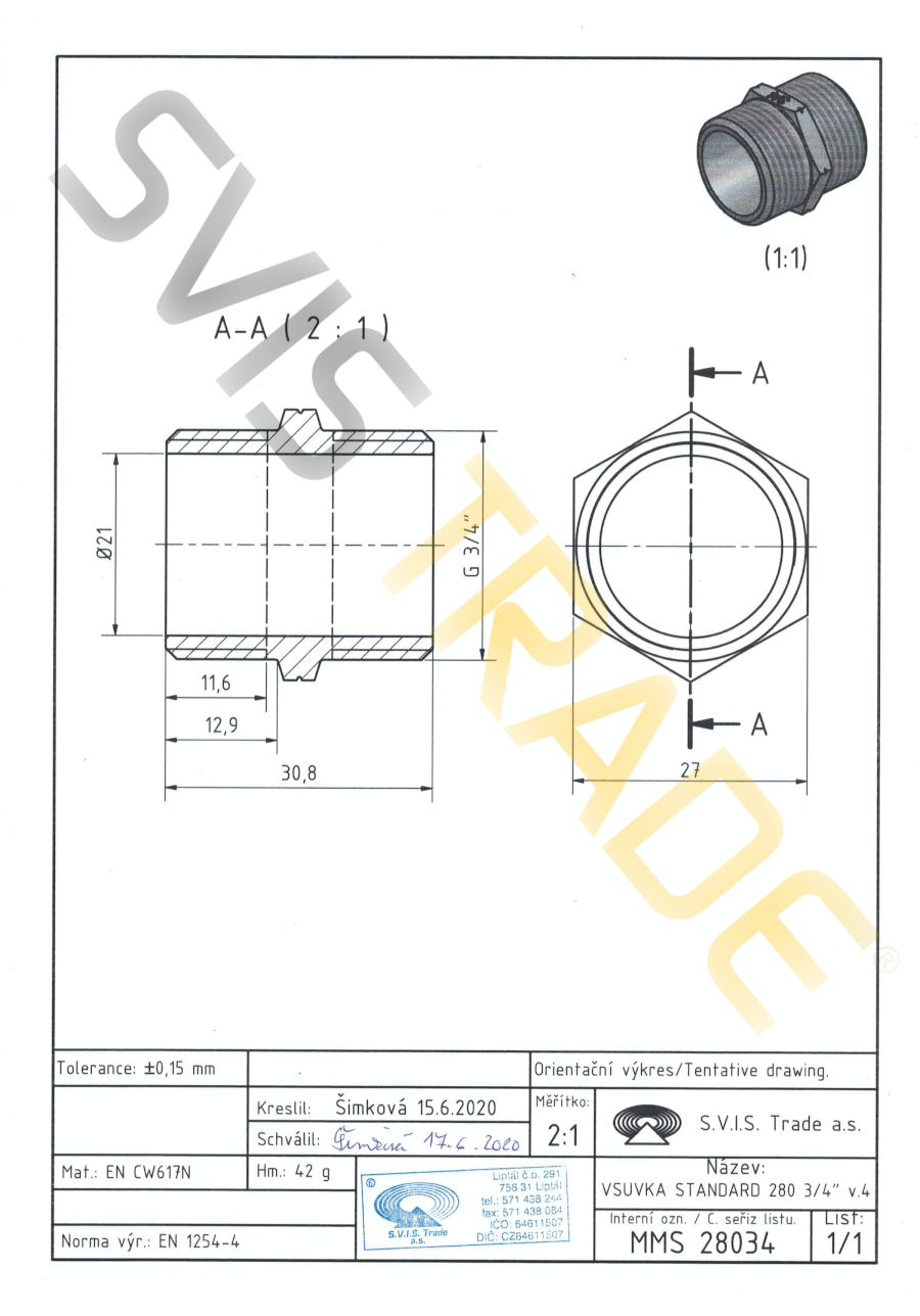 S.V.I.S Trade-czeski producent kształtek jest posiadaczem certyfikatów ISO 9001,ISO 14001,OHSAS 18001. Na mosiężne kształtki stosujemy ubezpieczenie szkody na całym terytorium EU.