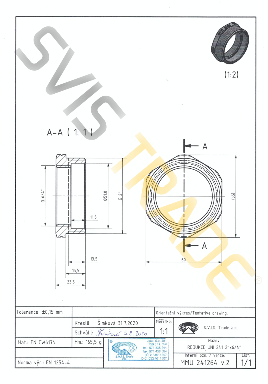 Mosiężna redukcja MF - 241 MMU-UNIVERSAL. Wyprodukowana według normy EN 1254-4 - gwintowana mosiężna złączka. Bez obróbki powierzchniowej. S.V.I.S Trade-czeski producent kształtek jest posiadaczem certyfikatów ISO 9001,ISO 14001,OHSAS 18001. Na mosiężne kształtki stosujemy ubezpieczenie szkody na całym terytorium EU. Zaprojektowane do dystrybucji wody,wody pitnej,powietrza,nieabrazyjne i nie agresywne media do dopuszczalnego ciśnienia 1,6 MPa i temperatury od -20°C do 120 °C, z koniecznością uniknięcia zamrożenia mediów. Seria kształtek UNIVESRAL - spełniają standardowe wymagania dotyczące połączeń gwintowych Mosiężne kształtki są produkowane z mosiądzu CW617 N. Jako materiał uszczelniający do montażu złączek mosiężnych zaleca się uzywanie taśmy teflonowej lub przewodu teflonowego. Producent NIE ZALECA używania konopi jako materiał uszczelniający. Zalecenia dla instalacji: dystrybucja wody,dystrybucja wody pitnej,dystrybucja ciepła,powietrza.